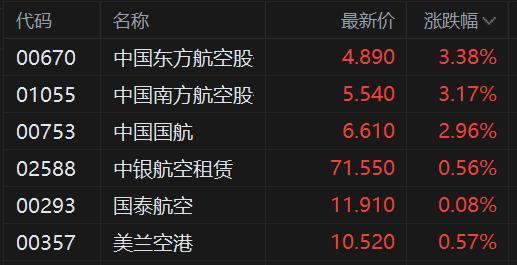 港股异动丨航空股再度活跃 三大航空股涨幅超3% 机构指行业周期向上拐点已现